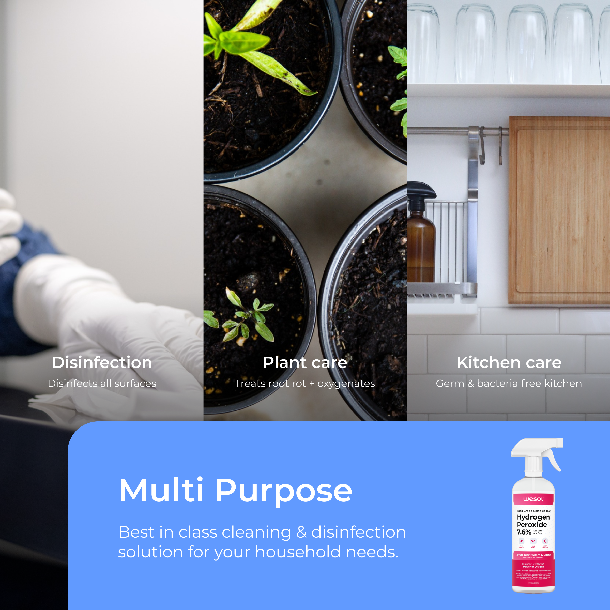 Wesol Hydrogen Peroxide 7.6% Food Grade Surface Disinfectant and Cleaner, 500ml Spray Bottle, Multipurpose Solution for Cleaning, Sterilisation, Farming, Gardening, Hydroponics Microgreens